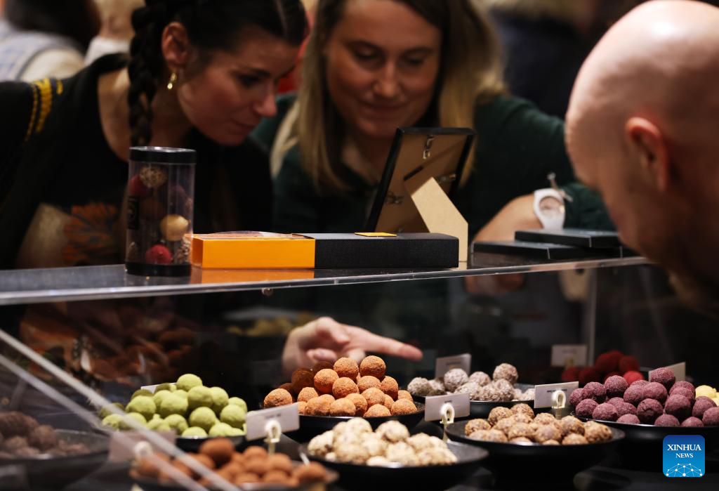 People visit the 27th Salon du Chocolat at the Versailles Expo in Paris, France, Oct. 31, 2022. The 27th Salon du Chocolat (chocolate fair) was held from Oct. 28 to Nov. 1. (Xinhua/Gao Jing)