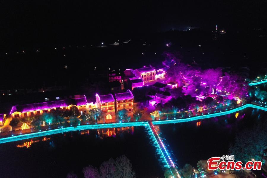 Colorful lights illuminate ancient village in Jiangxi (7)