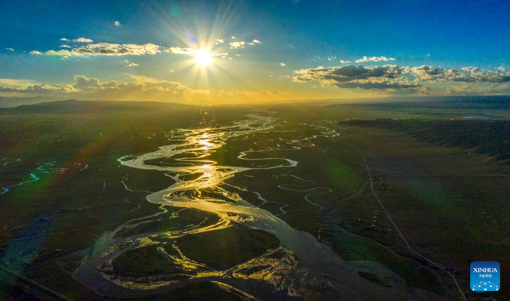 This aerial photo taken on July 19, 2020 shows a view of Buh River wetland at Qinghai Lake in northwest China's Qinghai Province.