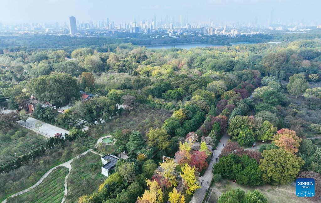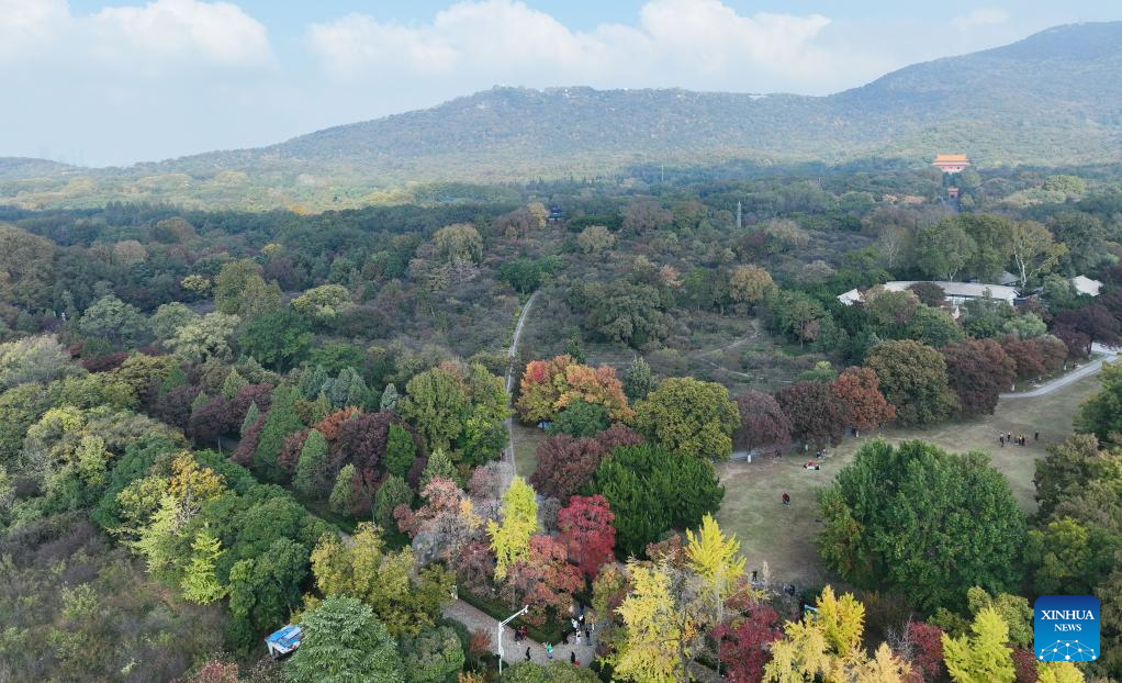 This aerial photo taken on Nov. 1, 2022 shows a view of the Nanjing Zhongshan Mountain National Park in Nanjing, east China's Jiangsu Province. (Xinhua/Ji Chunpeng)