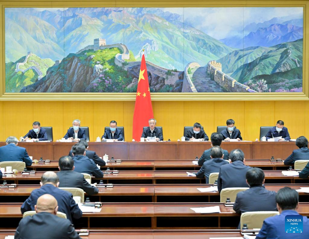 Chinese Vice Premier Hu Chunhua attends a teleconference on agricultural work in Beijing, capital of China, Nov. 1, 2022. Hu on Tuesday stressed efforts to boost the construction of water conservancy facilities during the coming winter and spring seasons, and to promote agricultural production. (Xinhua/Gao Jie)