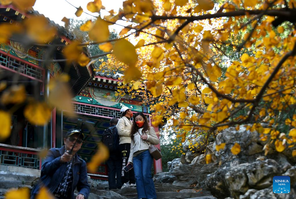 People enjoy the autumn scenery of Beihai Park in Beijing, capital of China, Nov. 1, 2022. (Xinhua/Luo Xiaoguang)