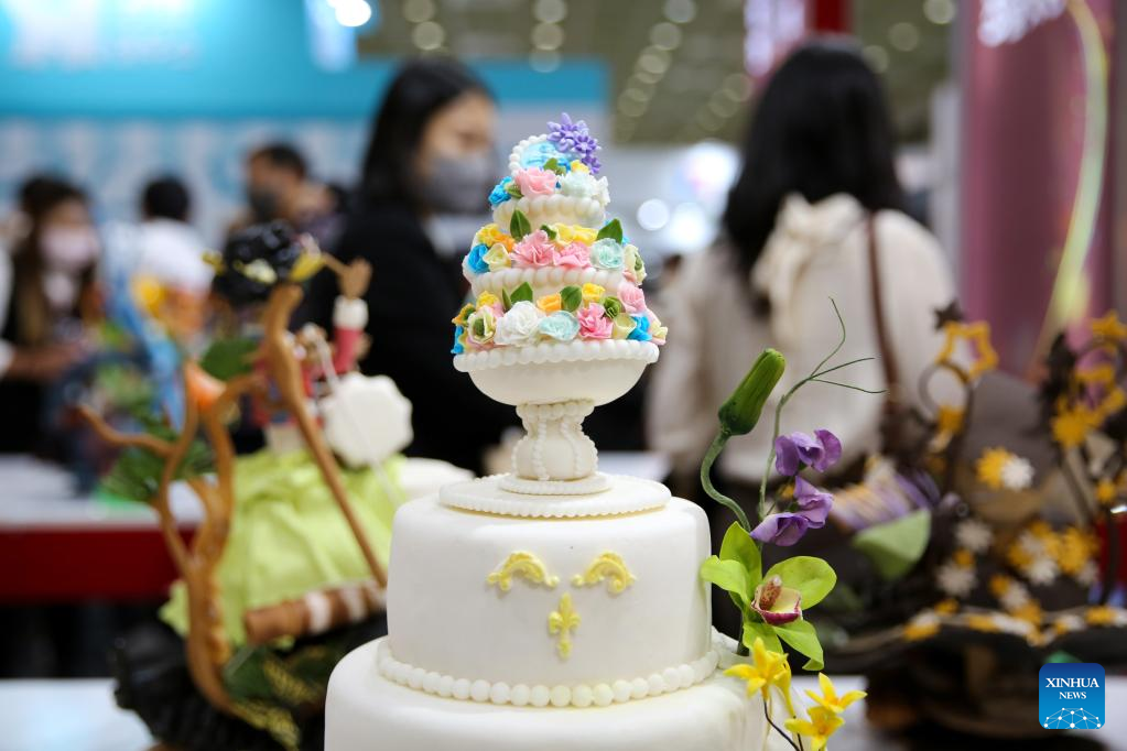 Desserts are displayed during the Coex Food Week 2022 in Seoul, South Korea, Nov. 2, 2022. The event kicked off in Seoul on Wednesday. (Xinhua/Wang Yiliang)