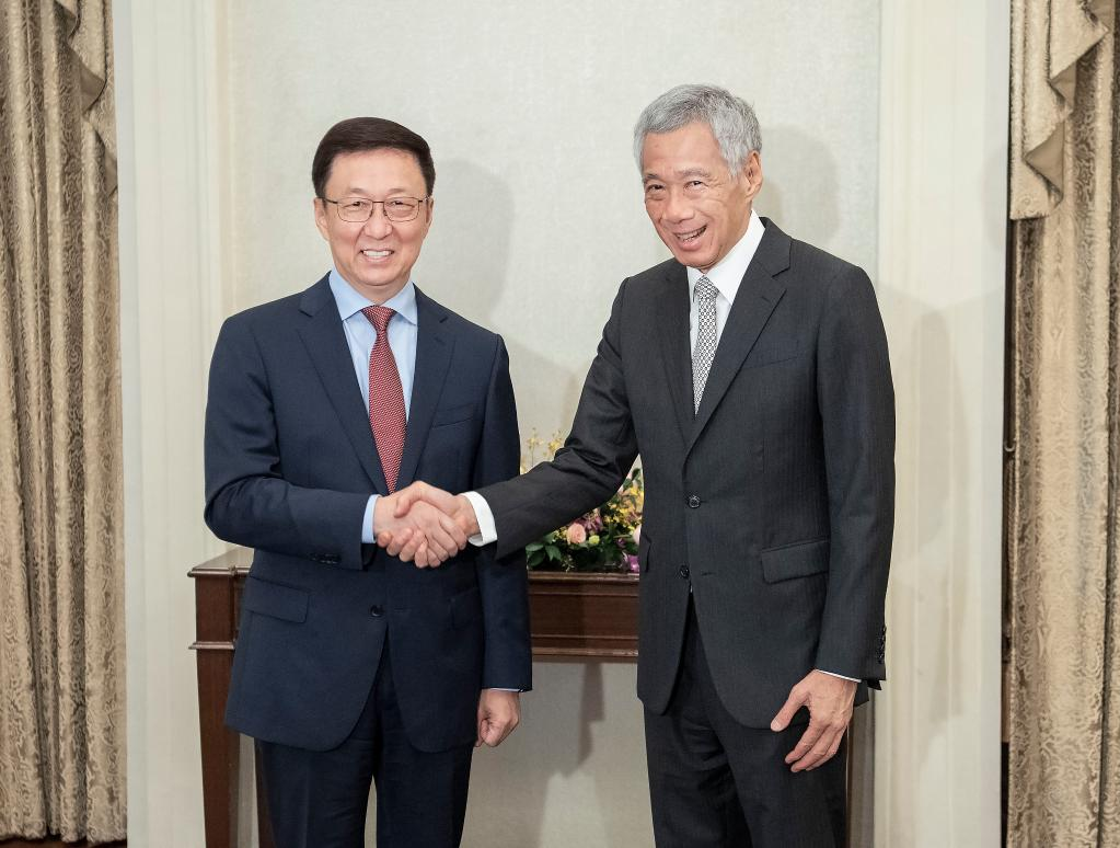 During his visit, Han met with Singaporean President Halimah Yacob, Prime Minister Lee Hsien Loong, Deputy Prime Minister Lawrence Wong, Deputy Prime Minister Heng Swee Keat, and Senior Minister Teo Chee Hean, respectively.