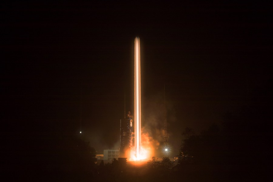 In this photo taken with a long-time exposure, China sends two new satellites of the BeiDou Navigation Satellite System (BDS) into space on a Long March-3B carrier rocket from the Xichang Satellite Launch Center in southwest China's Sichuan Province, on Nov. 19, 2018.(Xinhua/Ju Zhenhua)