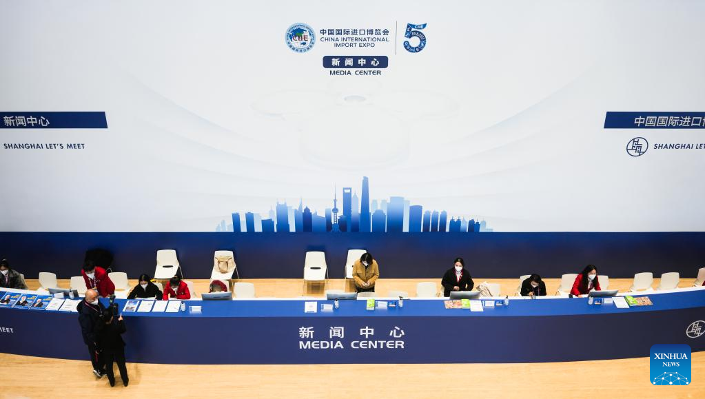 The media center of the 5th CIIE opened on Friday to provide services for journalists. (Xinhua/Dai Tianfang)
