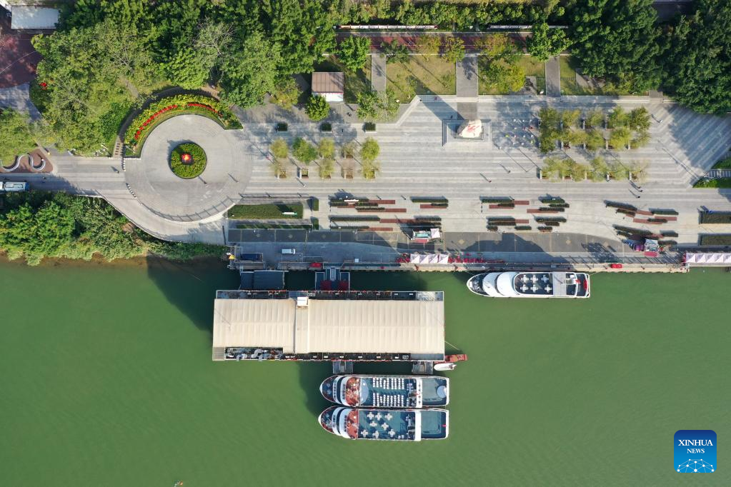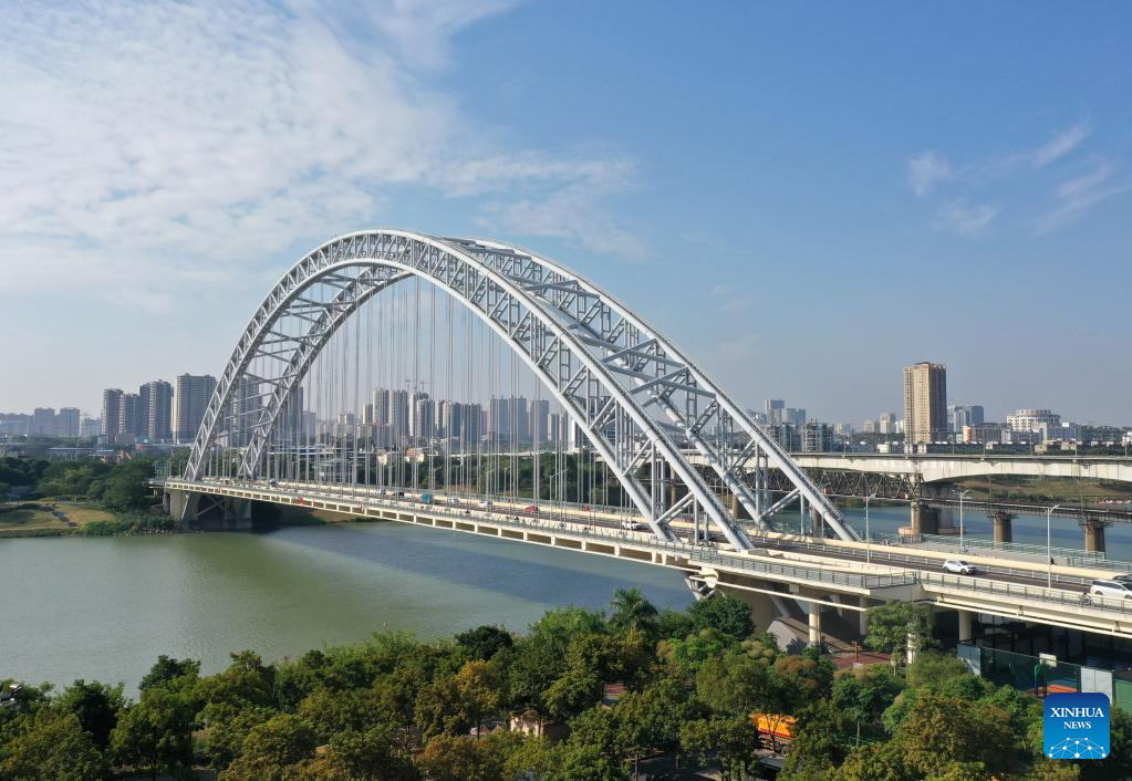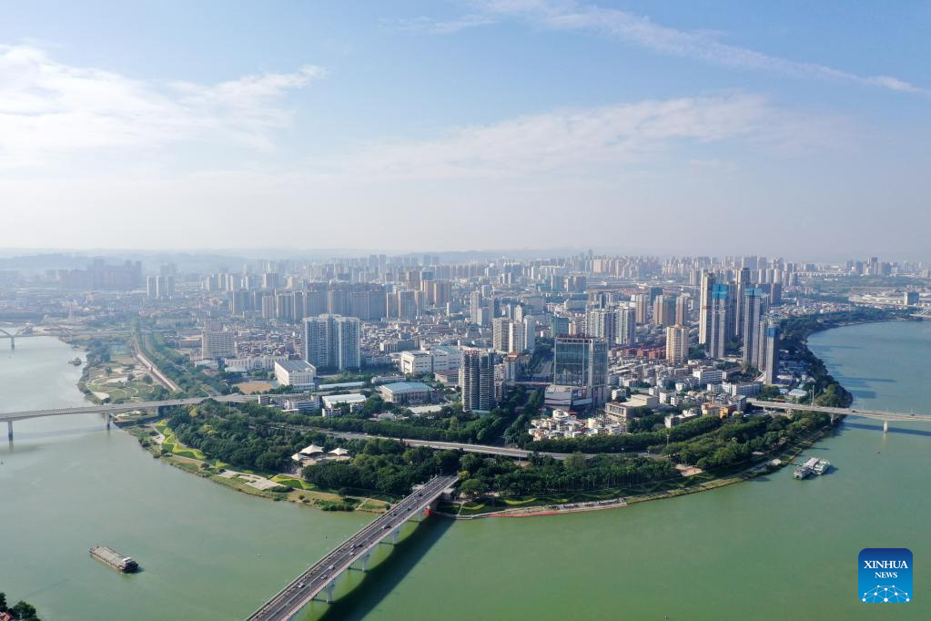 This aerial photo taken on Nov. 4, 2022 shows a cityscape on the banks of the Yongjiang River in Nanning, south China's Guangxi Zhuang Autonomous Region. (Xinhua/Lu Boan)