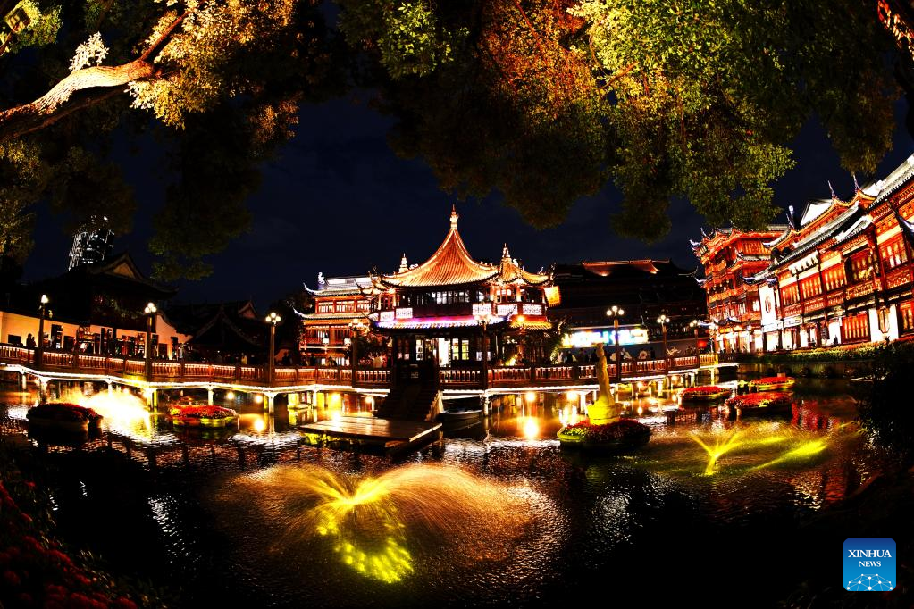 This photo taken on Nov. 4, 2022 shows an evening view of the Yuyuan Garden in east China's Shanghai. The fifth China International Import Expo (CIIE) is held in Shanghai from Nov. 5 to 10. (Xinhua/Zhang Jiansong)