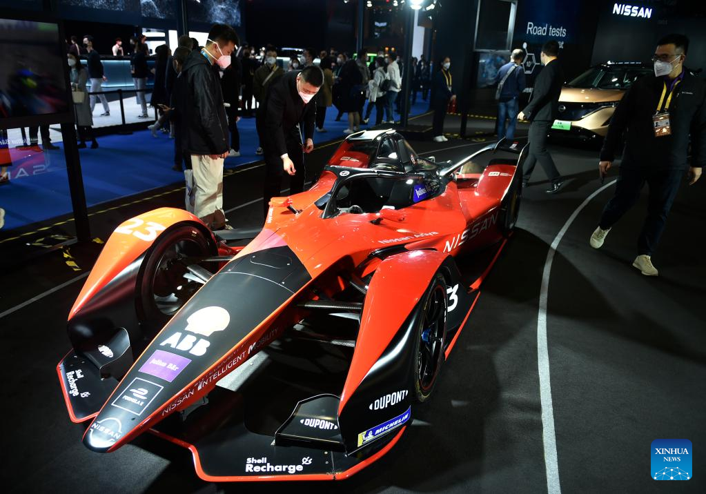 This photo taken on Nov. 6, 2022 shows a racing vehicle exhibited at the automobile exhibition area of the fifth China International Import Expo (CIIE) at the National Exhibition and Convention Center (Shanghai) in east China's Shanghai. The fifth CIIE will run until Nov. 10 in China's economic hub Shanghai. (Xinhua/Lu Peng)