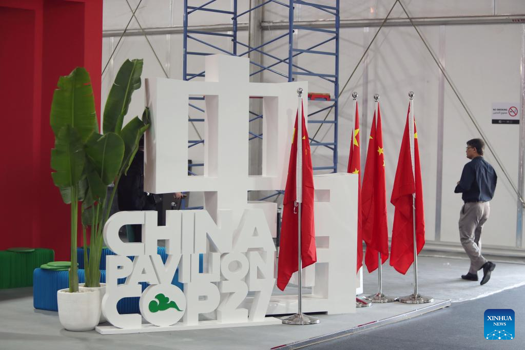 This photo taken on Nov. 6, 2022 shows a view of China's pavilion at the venue of the 27th session of the Conference of the Parties (COP27) to the UN Framework Convention on Climate Change, in Sharm El-Sheikh, Egypt. China has made remarkable progress toward its goals of reaching peak carbon emissions and carbon neutralization, China's Special Envoy for Climate Change Xie Zhenhua said Sunday at the side event. (Xinhua/Ahmed Gomaa)