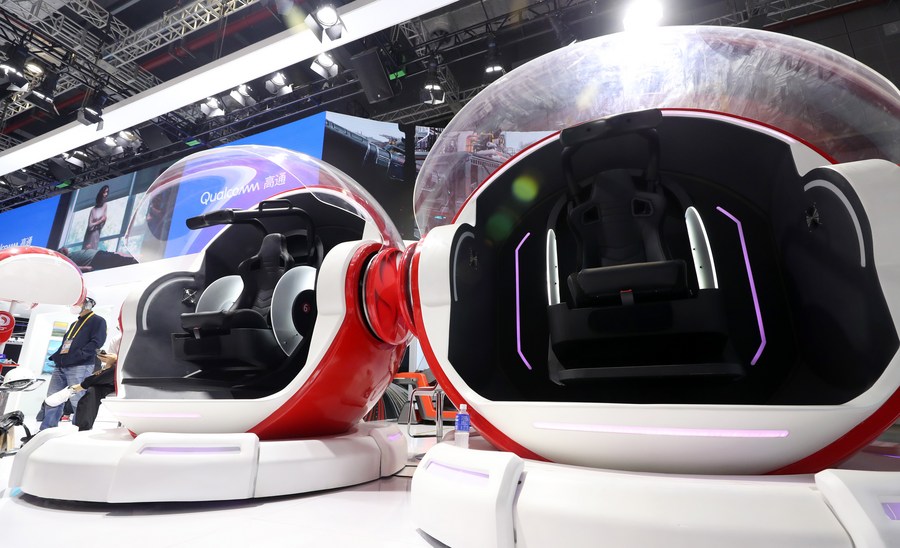 This photo taken on Nov. 2, 2022 shows gaming capsules of U.S. company Qualcomm to be displayed in the upcoming fifth China International Import Expo (CIIE) in east China's Shanghai. (Xinhua/Fang Zhe)
