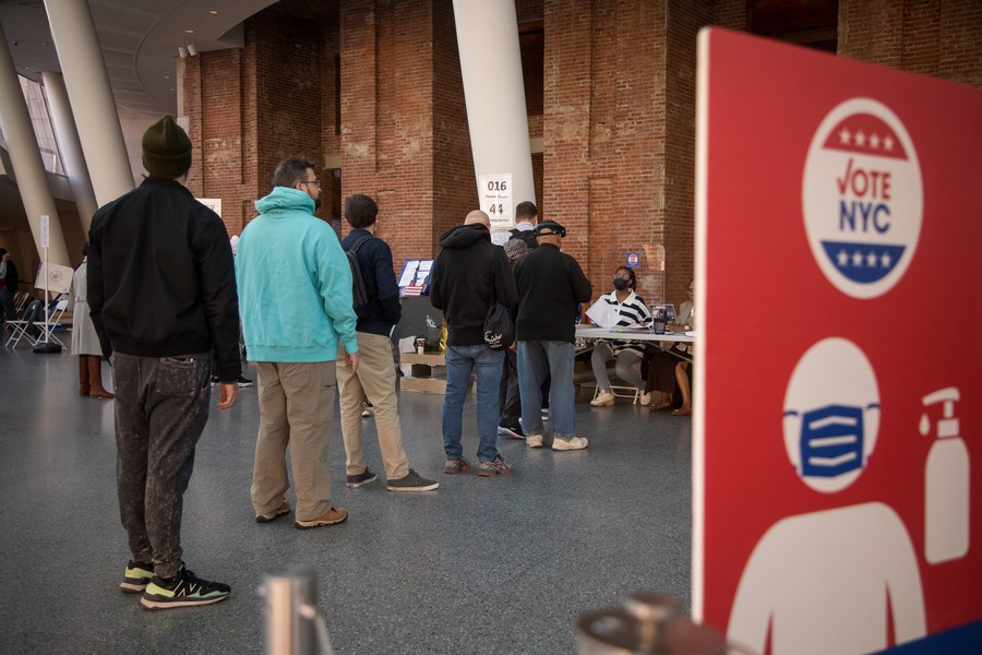 Voters line up to register at a polling station in New York, the United States, on Nov. 8, 2022. (Photo by Michael Nagle/Xinhua)