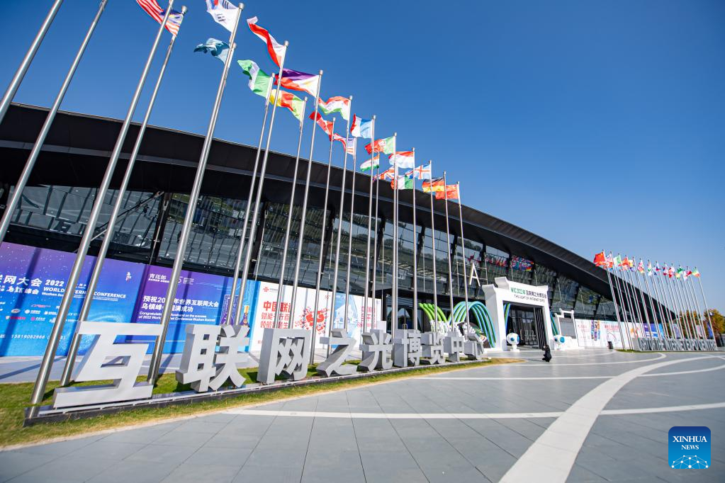 This photo taken on Nov. 8, 2022 shows the venue of the Light of Internet Expo in Wuzhen, east China's Zhejiang Province. The expo kicked off here on Tuesday. (Xinhua/Jiang Han)