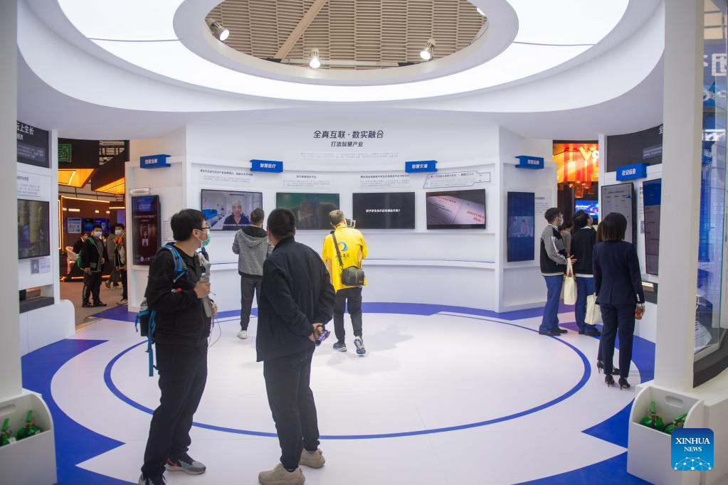 People visit the Light of Internet Expo in Wuzhen, east China's Zhejiang Province, Nov. 8, 2022. The expo kicked off here on Tuesday. (Xinhua/Jiang Han)