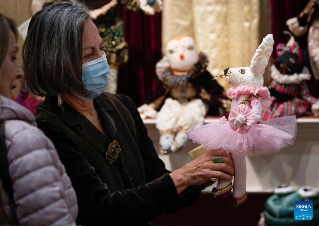 People look at a handmade doll at the Circle Craft Christmas Market in Vancouver, British Columbia, Canada, on Nov. 9, 2022. (Photo by Liang Sen/Xinhua)