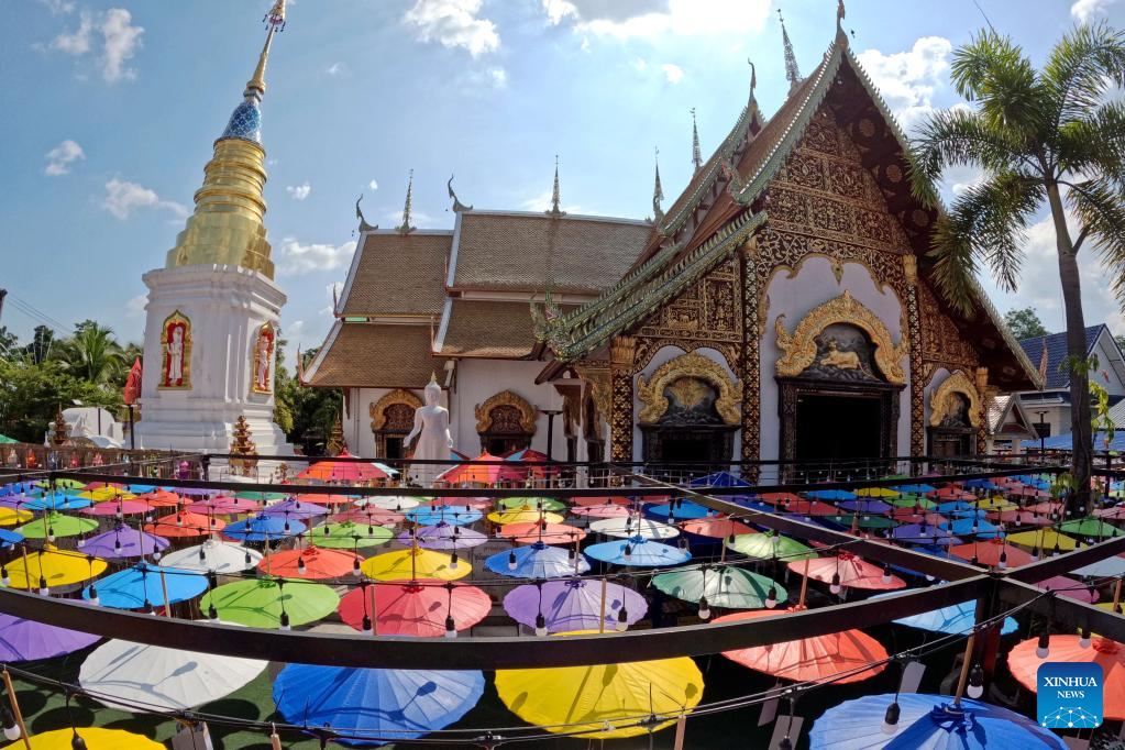 This photo taken on Nov. 9, 2022 shows paper umbrellas in Chiang Mai, Thailand. (Xinhua/Wang Teng)