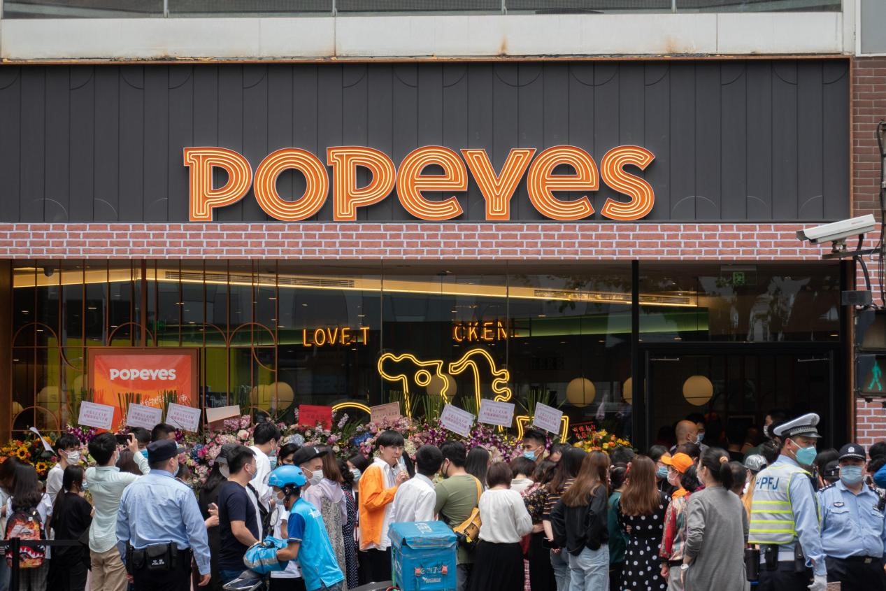 The first restaurant of American fried chicken chain Popeyes Louisiana Kitchen in China opens in Shanghai, May 15, 2020. (People's Daily Online/Wang Gang)