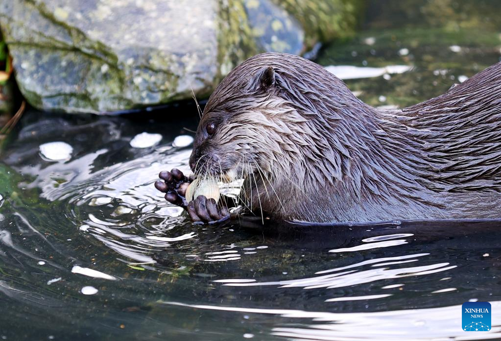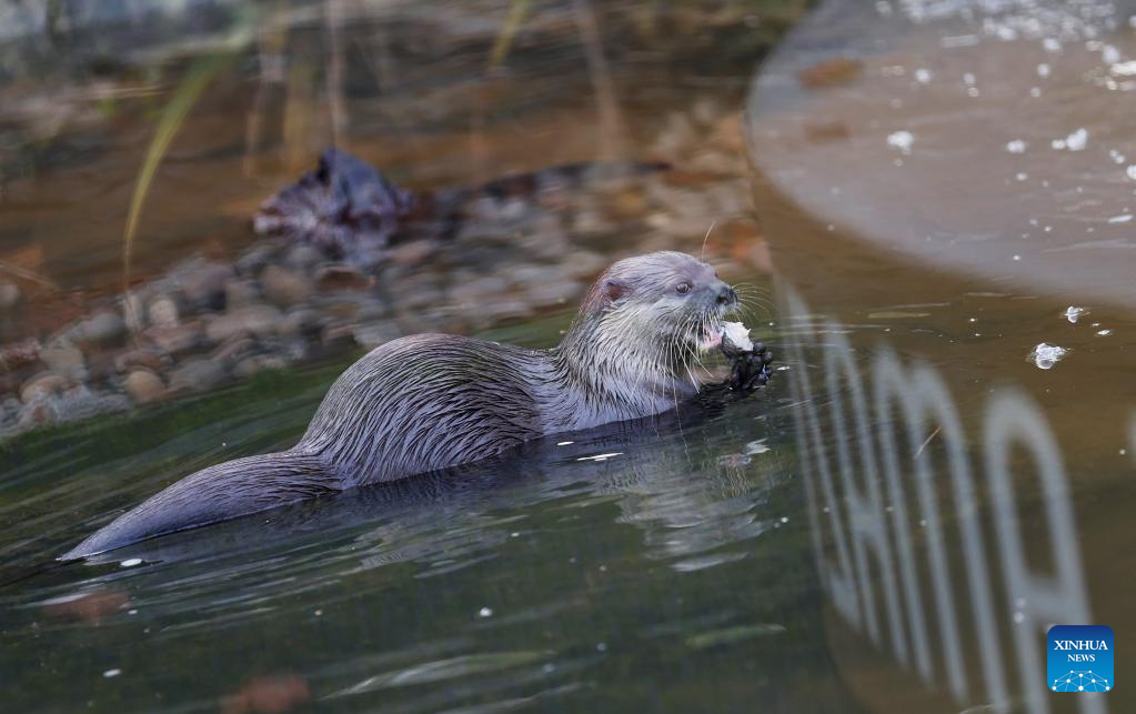 This photo taken on Nov. 9, 2022 shows an otter at London Wetland Centre in London, Britain. (Xinhua/Li Ying)