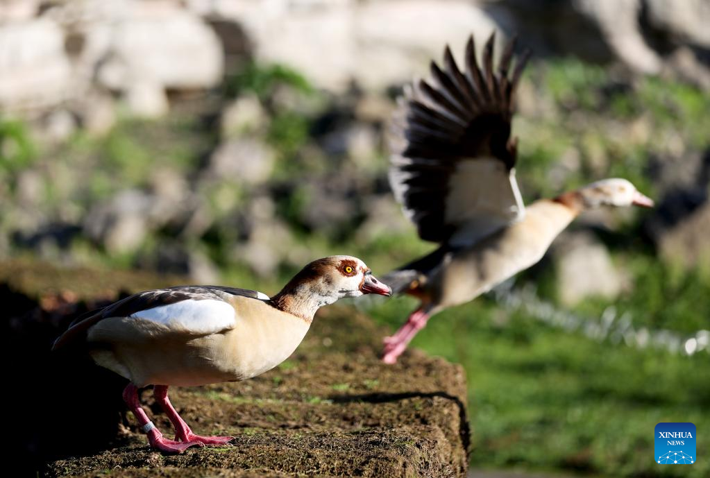 This photo taken on Nov. 9, 2022 shows Egyptian geese at London Wetland Centre in London, Britain. (Xinhua/Li Ying)
