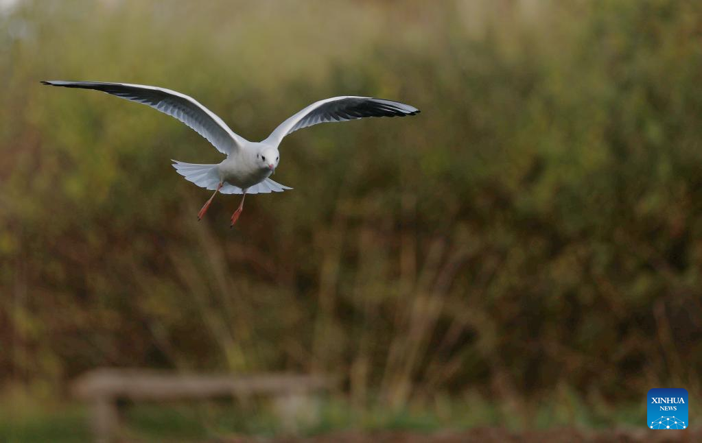 This photo taken on Nov. 9, 2022 shows a black-headed gull at London Wetland Centre in London, Britain. (Xinhua/Li Ying)