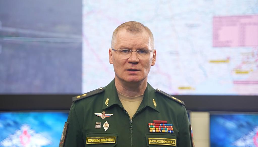 Russian Defense Ministry spokesman Igor Konashenkov speaks during a daily briefing on Nov. 11, 2022. (Screengrab of Russian Defense Ministry footage)