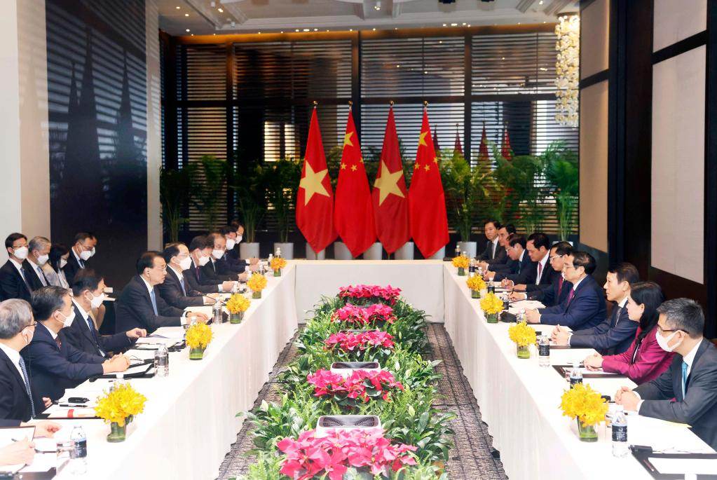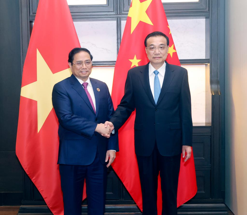 PHNOM PENH, Nov. 11 (Xinhua) -- Chinese Premier Li Keqiang met with Vietnamese Prime Minister Pham Minh Chinh here on Friday, with both sides pledging efforts to enhance the bilateral relations.