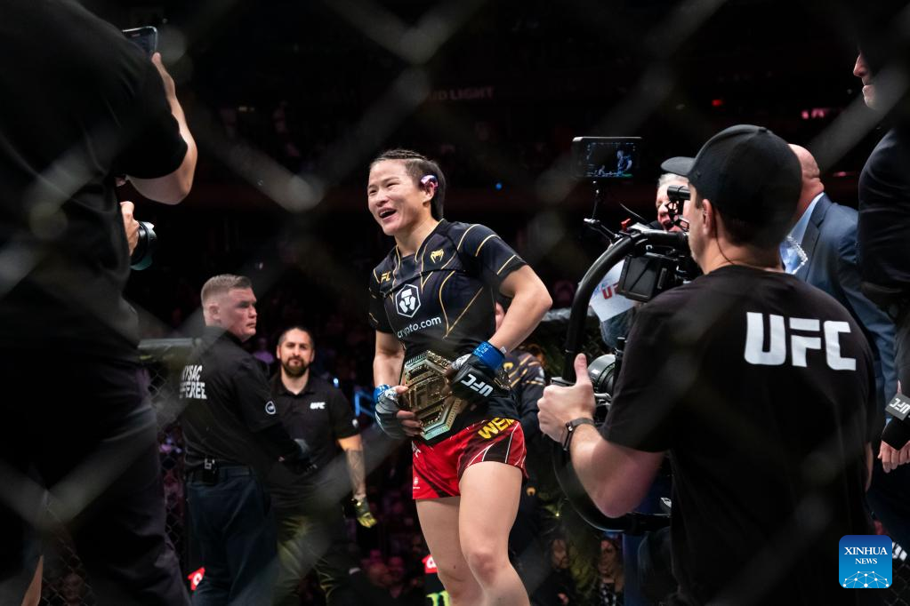 NEW YORK, Nov. 13 (Xinhua) -- In an action-packed UFC 281 card, China's Zhang Weili returned to the top of the women's strawweight division, regaining her belt against two-time title holder Carla Esparza, while in the main event, Alex Periera upset middleweight king Israel Adesanya.