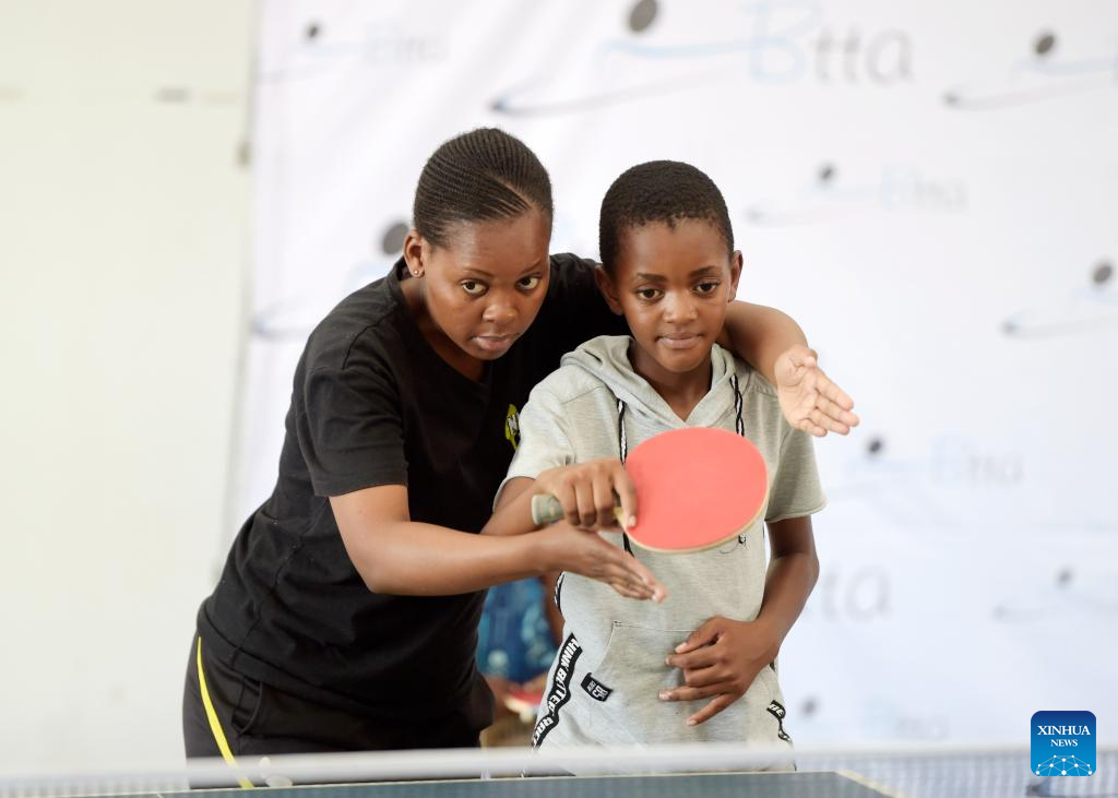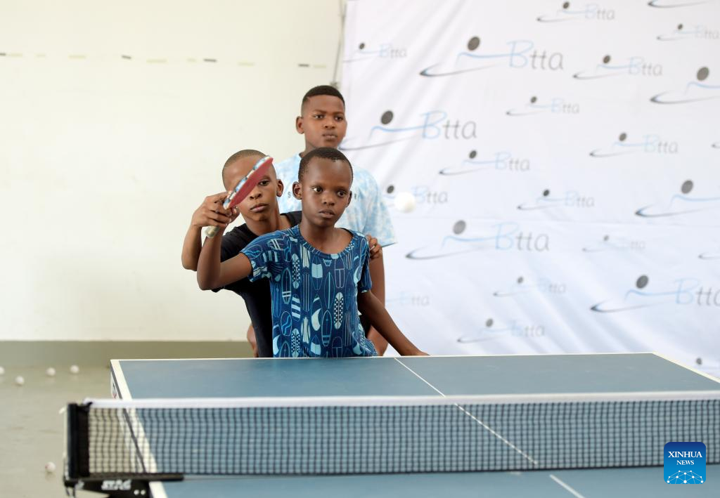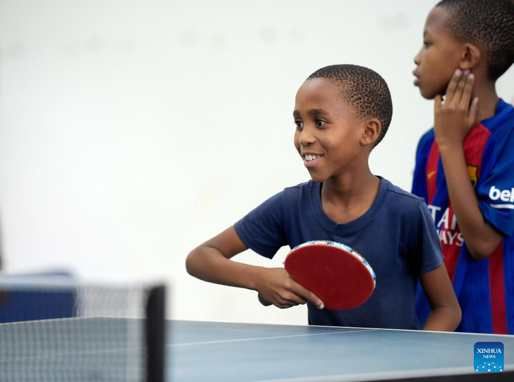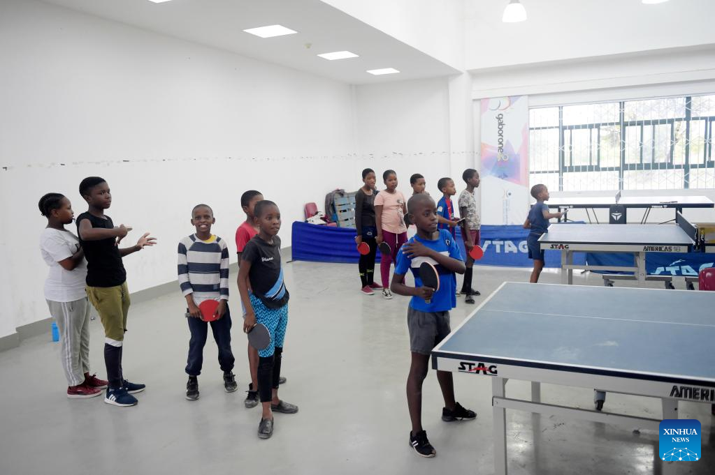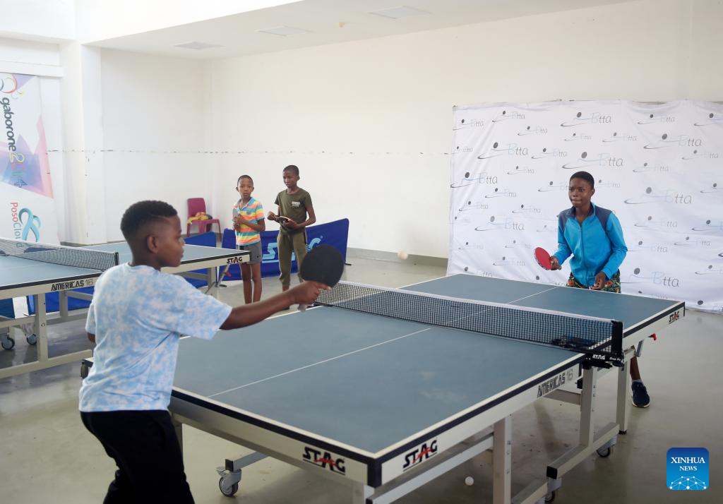 Kids practice table tennis at BNYC in Gaborone, Botswana's capital city, Nov, 8, 2022. (Photo by Tshekiso Tebalo/Xinhua)