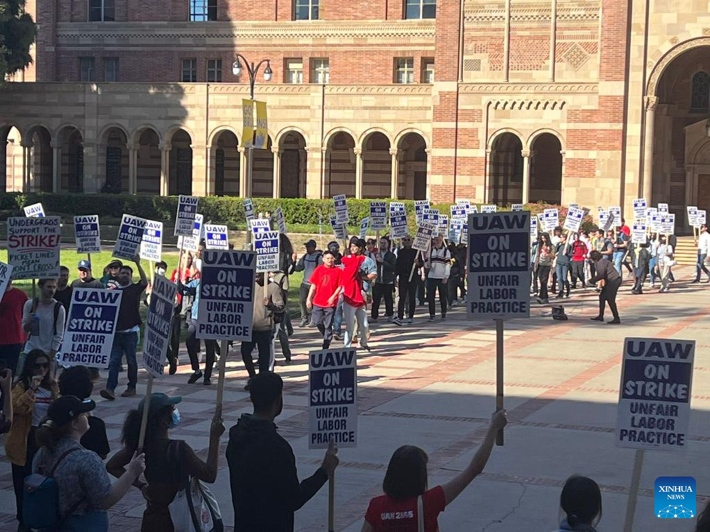 LOS ANGELES, Nov. 14 (Xinhua) -- Tens of thousands of academic workers at the University of California (UC) system went on strike Monday for higher wages and better working conditions.