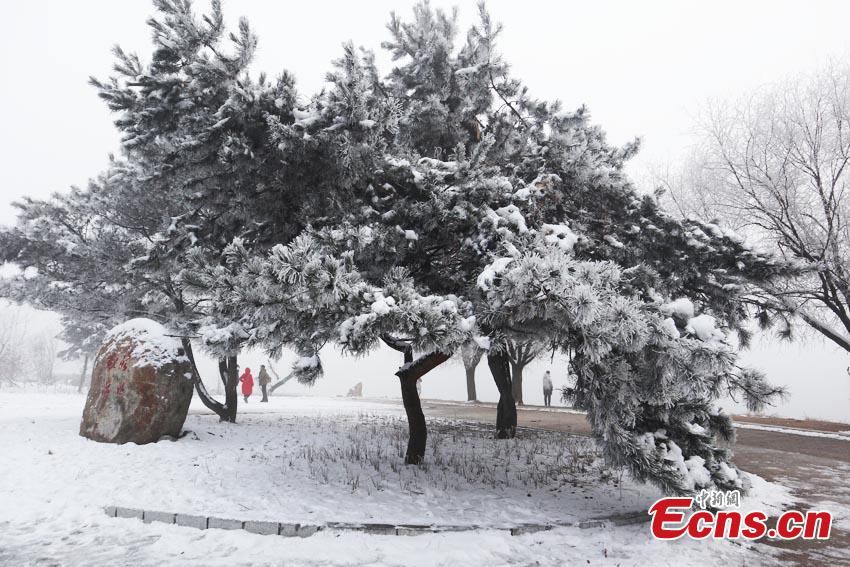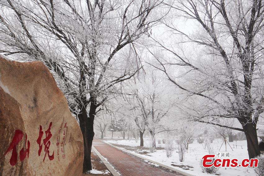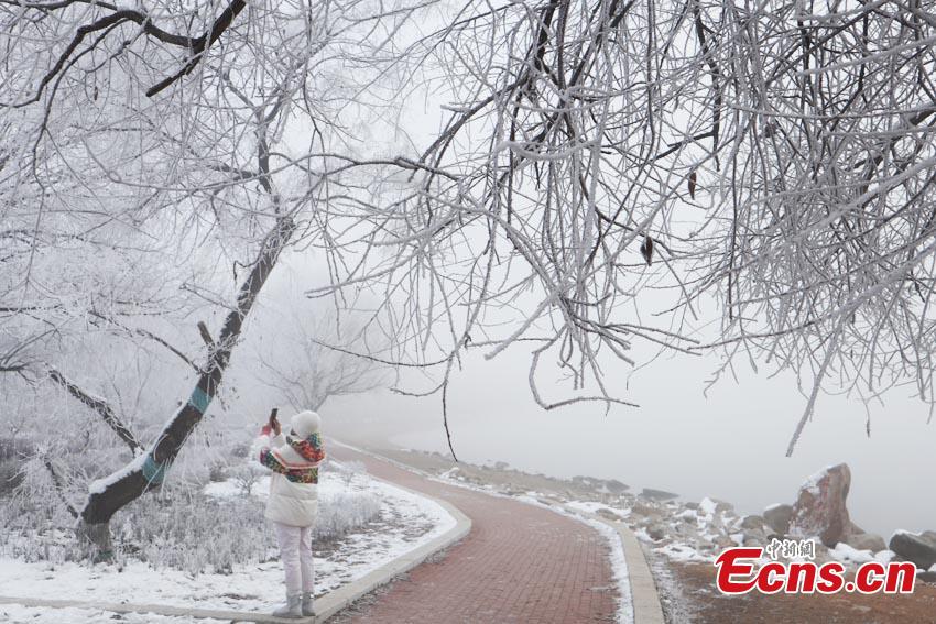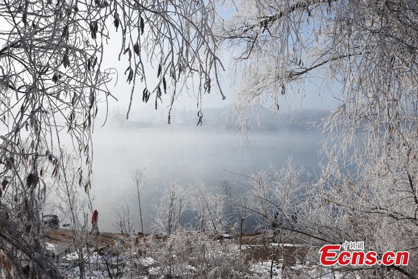 Crystal-clear icicles hang on trees along the banks of Songhua River, covering the landscape in a palette of silver and white, a typical but unique winter scene in Jilin City, northeast China's Jilin Province, Nov. 15, 2022. (Photo: China News Service/Cang Yan)