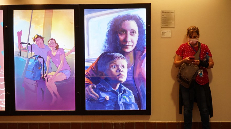 A woman wearing a face mask is seen at L.A. union station in Los Angeles, California, the United States, on Aug. 5, 2022. (Xinhua)