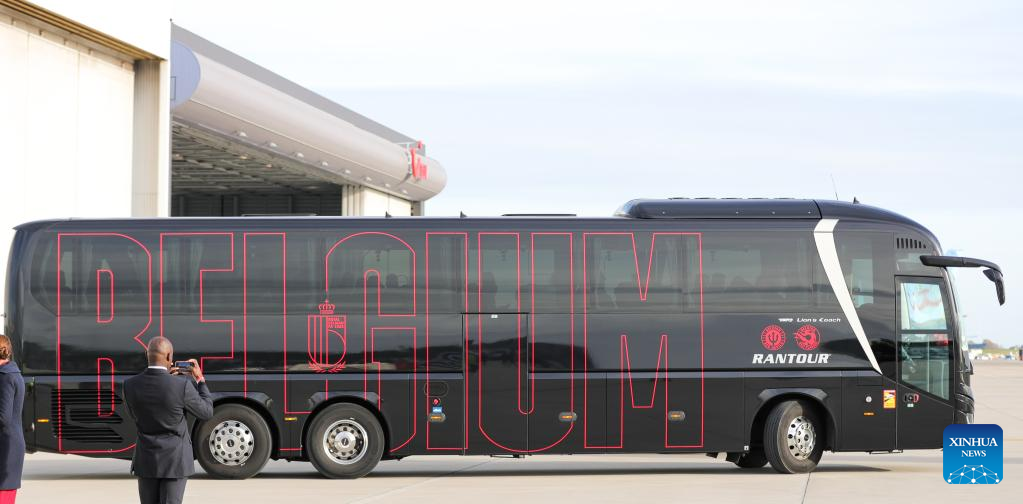 Team Belgium's coach moves at the Brussels Airport in Zaventem, Belgium, Nov. 15, 2022. Team Belgium started their journey to the Middle East as they prepare for the upcoming Qatar 2022 World Cup. (Xinhua/Zheng Huansong)