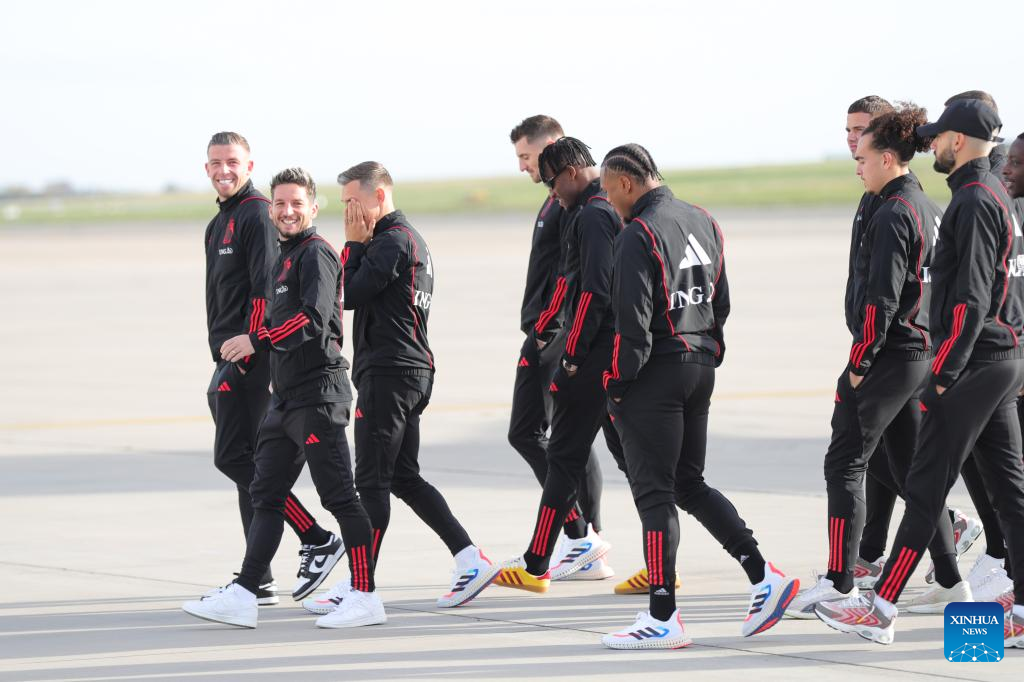 Players of Team Belgium are seen at the Brussels Airport in Zaventem, Belgium, Nov. 15, 2022. Team Belgium started their journey to the Middle East as they prepare for the upcoming Qatar 2022 World Cup. (Xinhua/Zheng Huansong)
