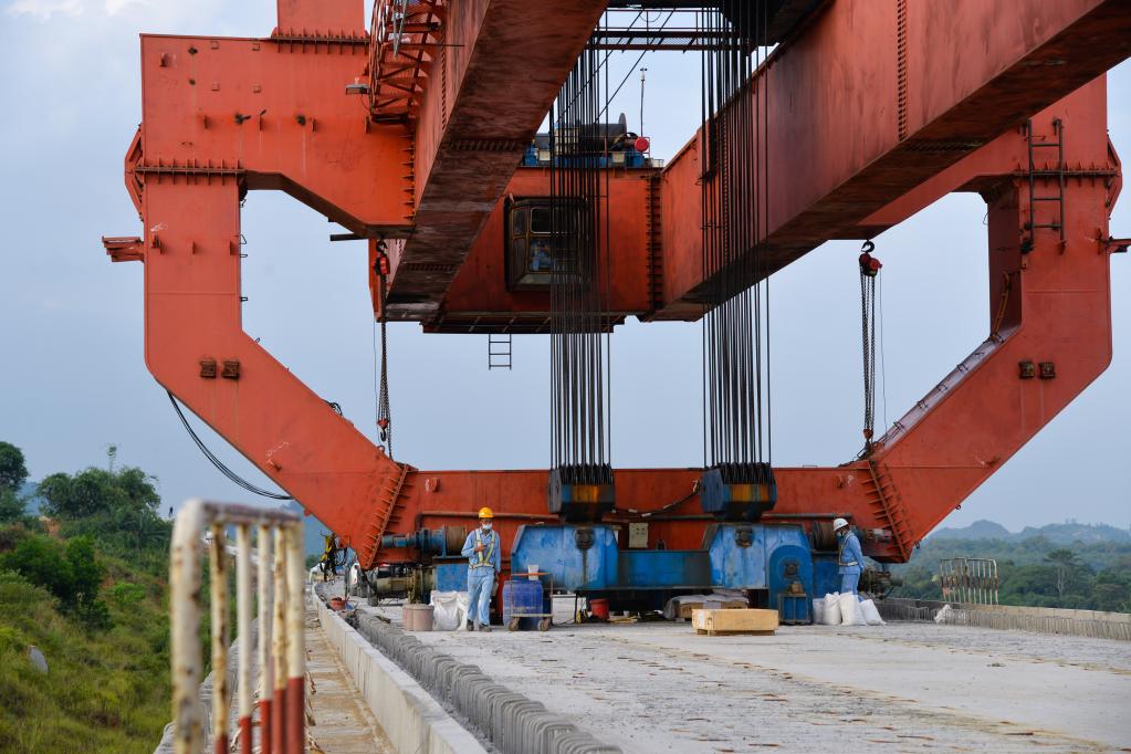 At present, all tunnels and culverts along the railway have been completed, as well as over 90 percent of the civil works of subgrade, bridges and stations. The overall construction has now entered the track-laying stage.