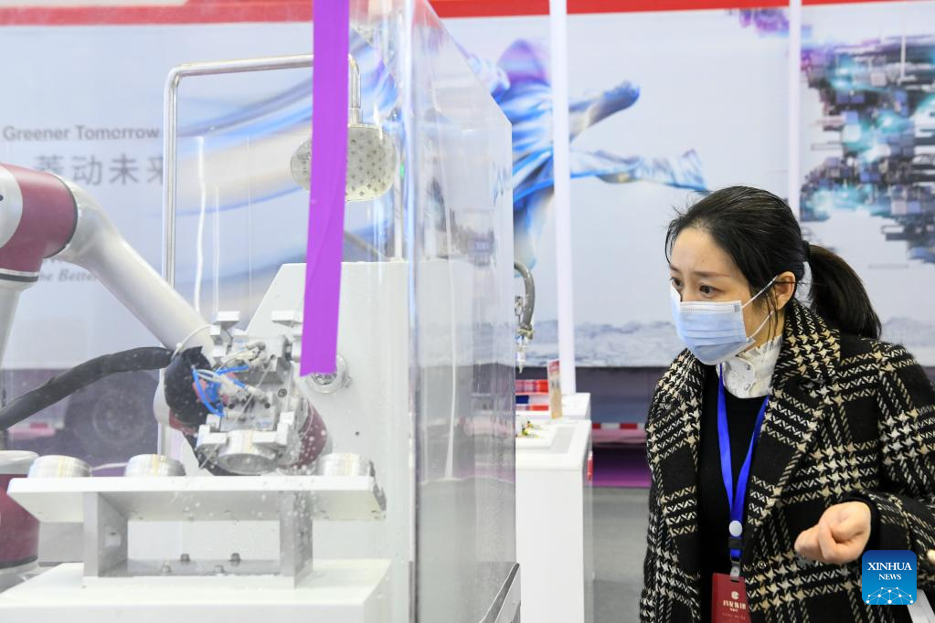 A visitor views a flexible robot at the 10th China (Mianyang) Science and Technology City International High-Tech Expo in Mianyang, southwest China's Sichuan Province, Nov. 16, 2022.