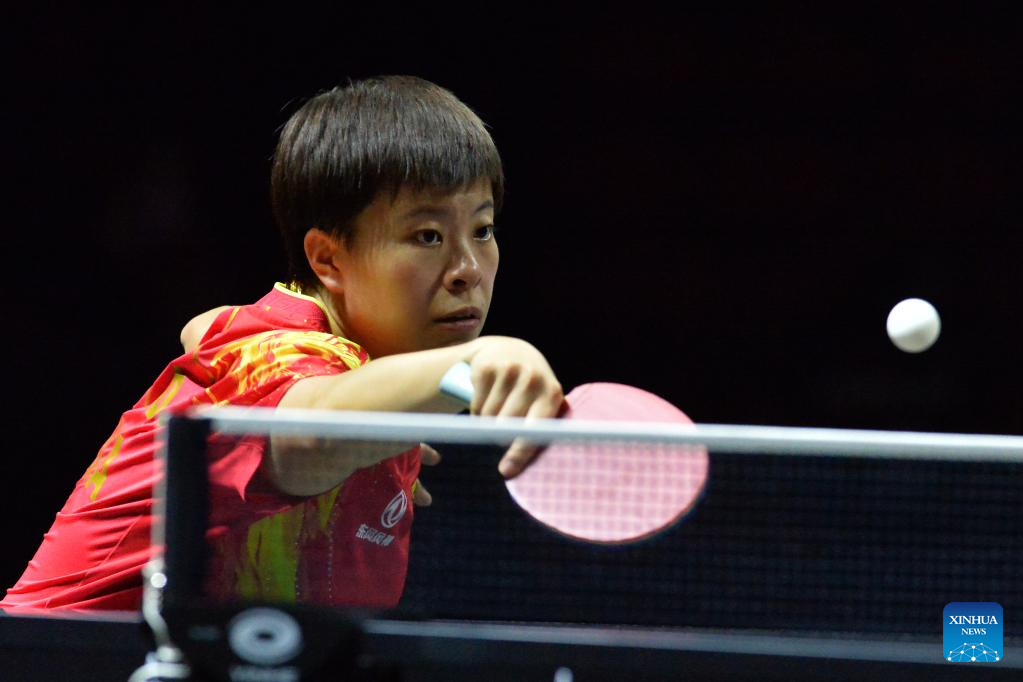 Wang Yidi of China returns the ball during the women's singles 1st round match against Zauresh Akasheva of Kazakhstan at the Asian Cup 2022 table tennis in Bangkok, Thailand, Nov. 17, 2022. (Xinhua/Rachen Sageamsak)