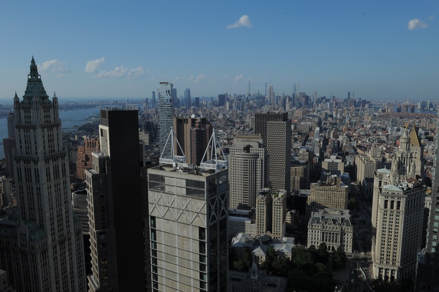 Photo taken on July 21, 2022 shows a panoramic view of Manhattan, New York City, the United States. (Photo by Emma Li/Xinhua)