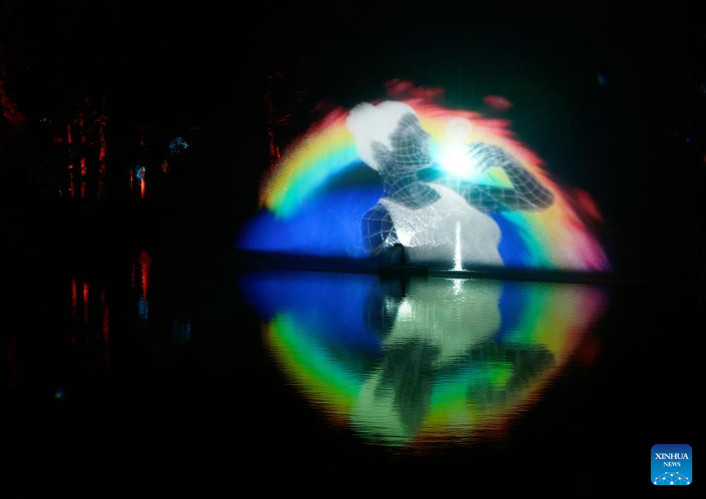 This photo taken on Nov. 16, 2022 shows a light decoration at the "Christmas Garden Berlin" light show held at the Botanical Garden in Berlin, Germany. (Photo by Stefan Zeitz/Xinhua)