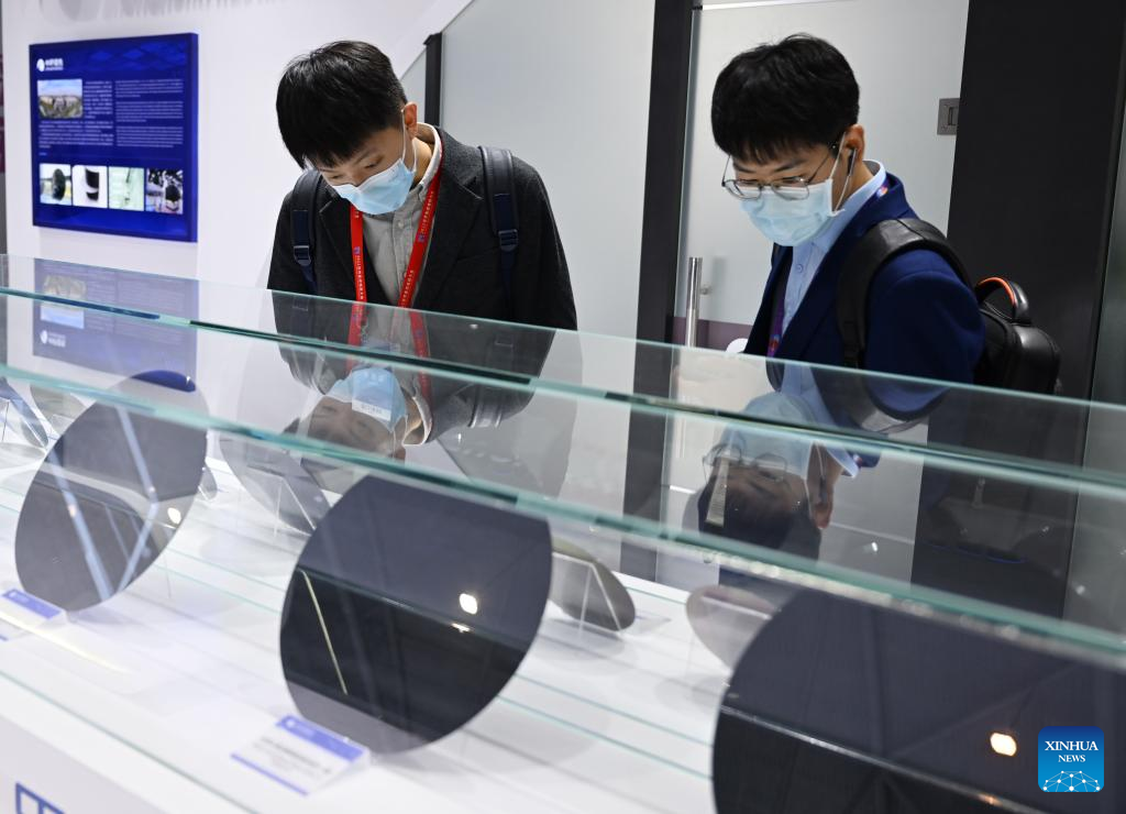Visitors view exhibits at the World Conference on Integrated Circuits 2022 in Hefei, east China's Anhui Province, Nov. 17, 2022. (Xinhua/Zhou Mu)