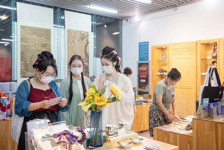 Visitors shop at a gift shop of the Anhui Museum, Hefei, east China's Anhui province, August 2022. (People's Daily Online/Luo Xianyang)