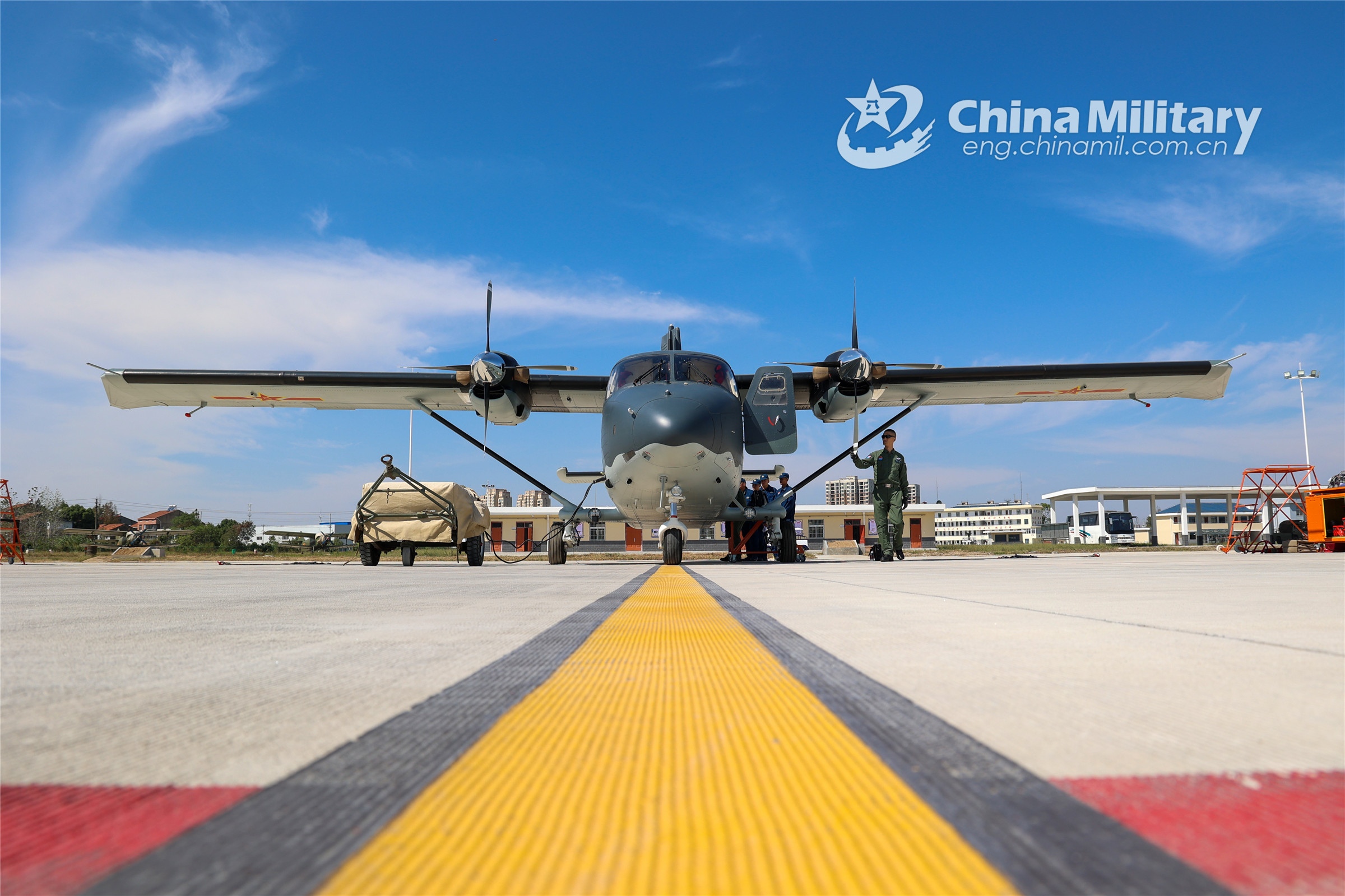 A Y-12 transport aircraft attached to an airborne brigade of the PLA air force takes off to participate in a multi-subject flight training exercise on Oct. 11, 2022. (eng.chinamil.com.cn/Photo by Li Zhuojun)