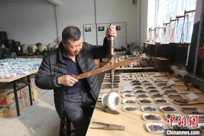 Zhao Shixin shows his collection. (Photo/Cui Lixia)