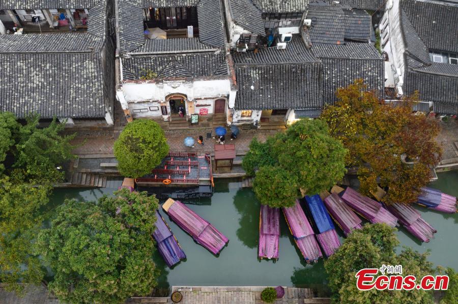 Tourists take a sightseeing boat in Tongli ancient town in Wujiang district of Suzhou, east China's Jiangsu Province, Nov. 17, 2022. (Photo: China News Service/Yang Bo)