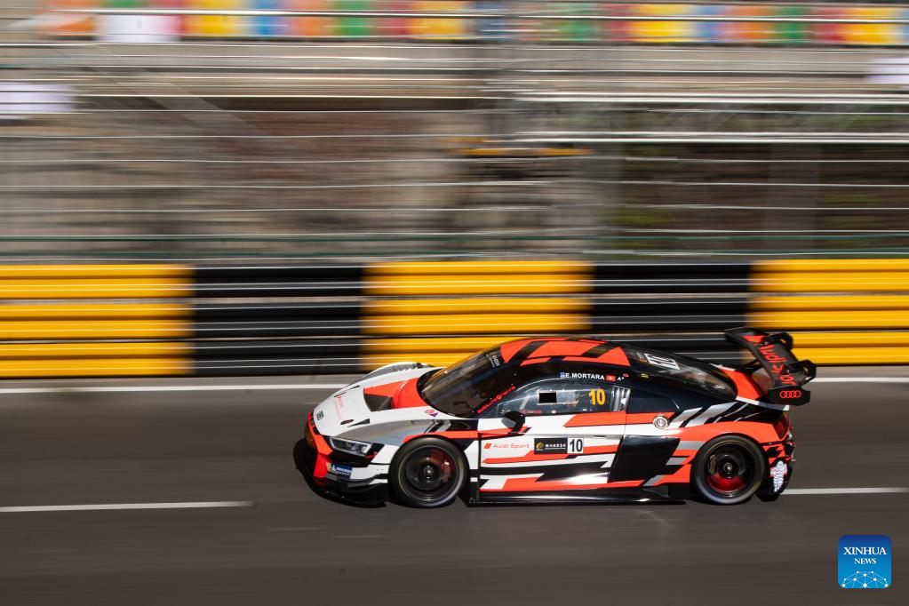 Edoardo Mortara of Switzerland drives during the Macao GT Cup qualifying match at the 69th Macao Grand Prix in Macao, south China, Nov. 18, 2022. (Xinhua/Cheong Kam Ka)