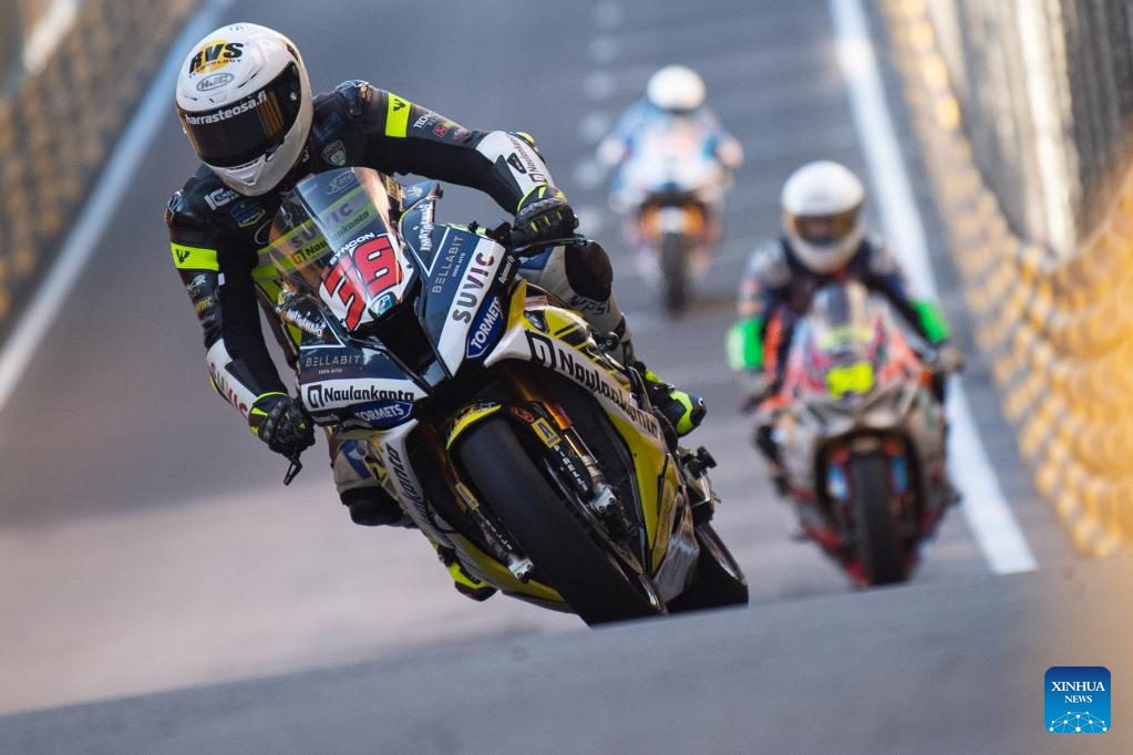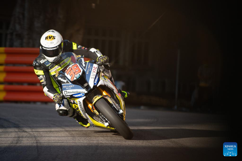 Erno Juhani Kostamo of Finland competes during the 54th Macao Motorcycle Grand Prix qualifying match at the 69th Macao Grand Prix in Macao, south China, Nov. 18, 2022. (Xinhua/Cheong Kam Ka)