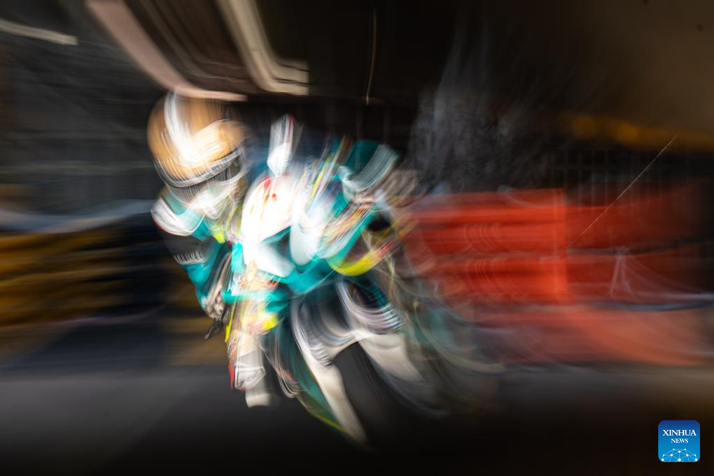 A rider competes during the 54th Macao Motorcycle Grand Prix qualifying match at the 69th Macao Grand Prix in Macao, south China, Nov. 18, 2022. (Xinhua/Cheong Kam Ka)