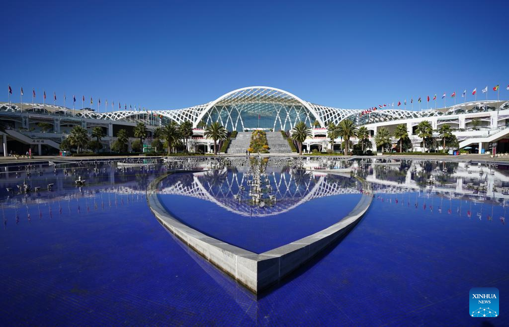 This photo taken on Nov. 19, 2022 shows a view of Kunming Dianchi International Convention and Exhibition Center, the venue for the 6th China-South Asia Exposition in Kunming, southwest China's Yunnan Province. (Xinhua/Chen Xinbo)