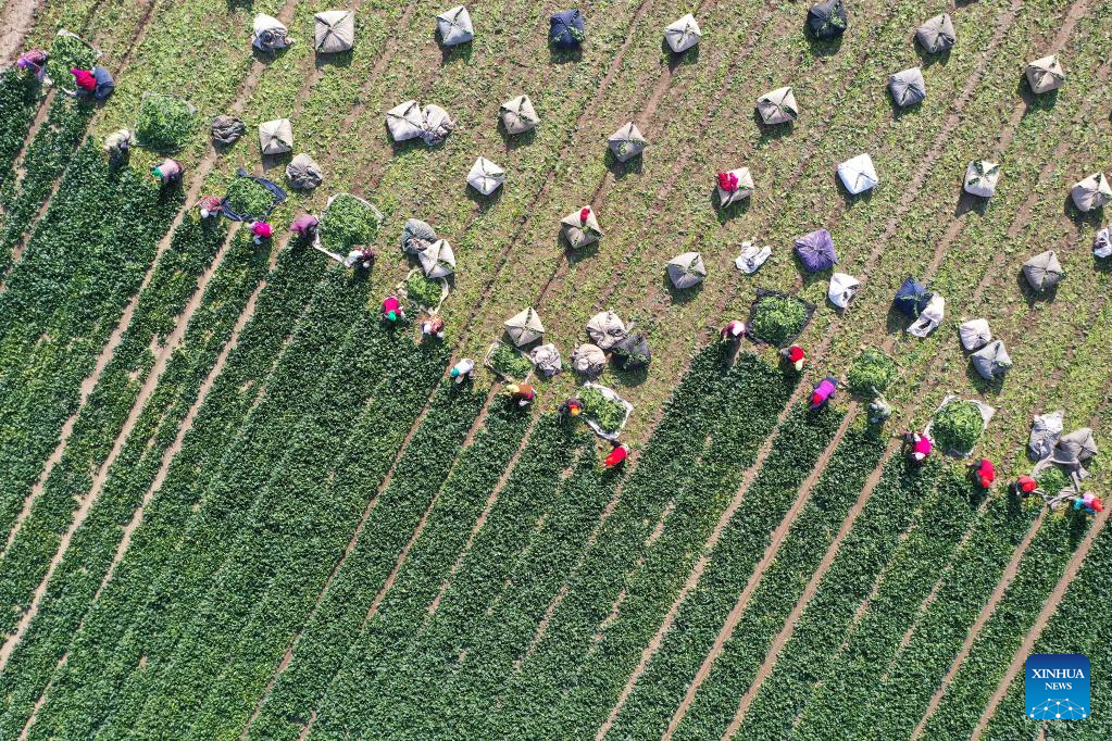 Vegetable farmers across China busy with harvest to ensure supply in winter