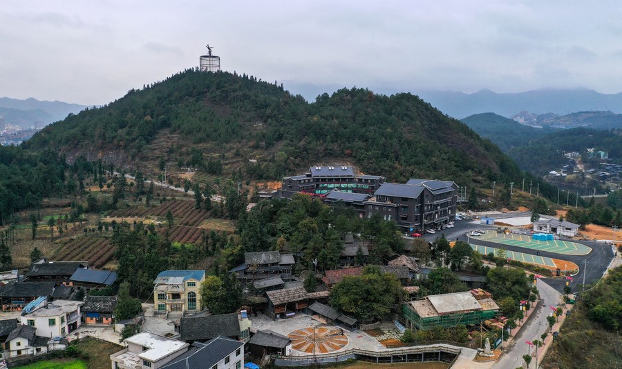This aerial photo taken on Nov. 16, 2022 shows a view of Kala Village in Longquan Township of Danzhai County, southwest China's Guizhou Province. (Xinhua/Yang Wenbin)