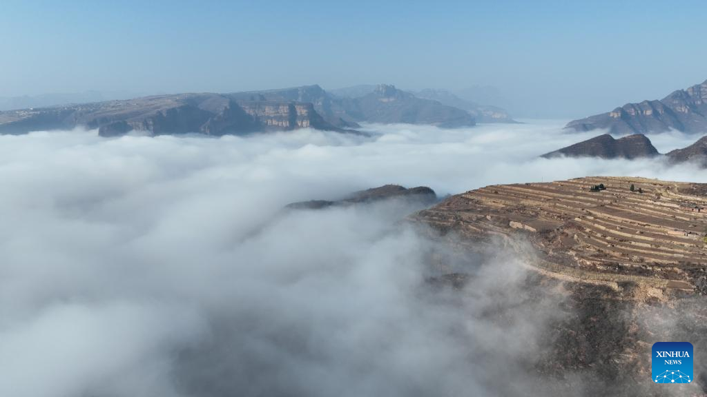 This aerial photo taken on Nov. 19, 2022 shows sea of clouds in Taihang Mountains in Liushigang Town of Shahe City, north China's Hebei Province. (Xinhua/Mu Yu)